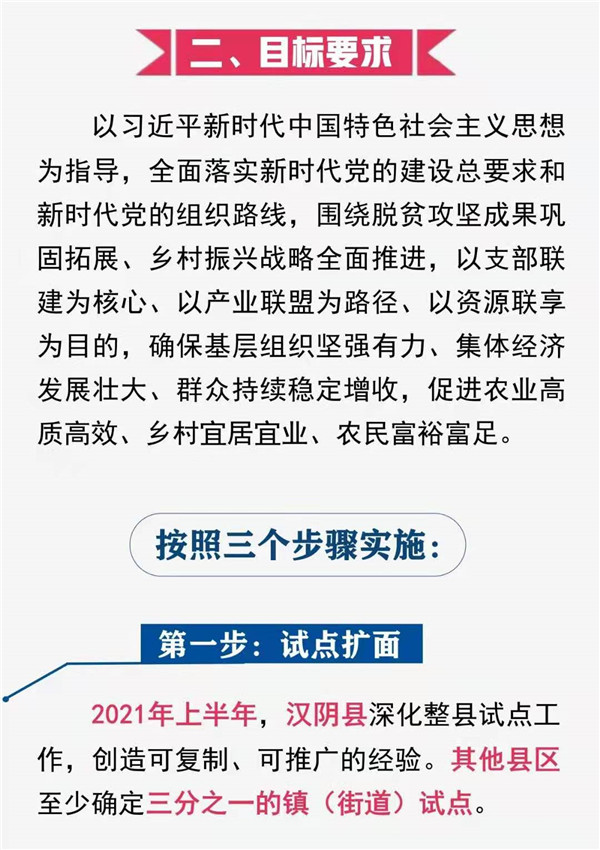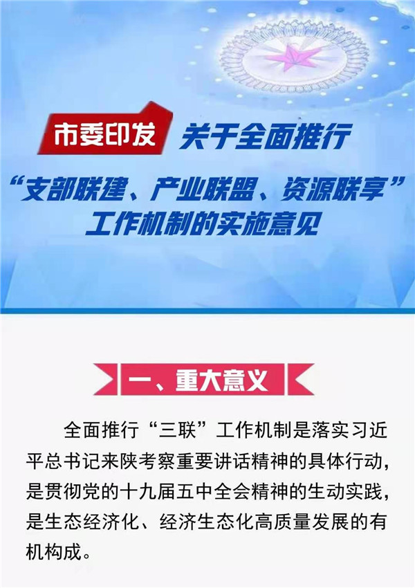 為深入貫徹落實習近平總書記來陜考察重要講話精神,實現鞏固拓展脫貧攻堅成果與鄉村振興有效銜接,以高質量基層黨建保障高質量發展,按照市委四屆十次全會要求,在總結漢陰等縣區試點經驗的基礎上,現就全面推行“支部聯建、產業聯盟、資源聯享”(以下簡稱“三聯”)工作機制,提出如下實施意見。r3V安康新聞網