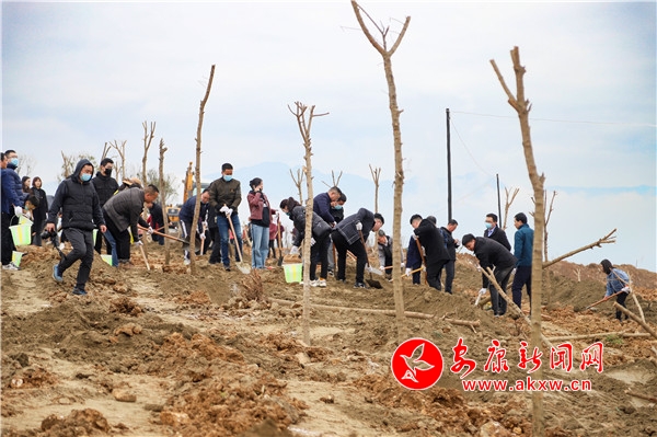 當天上午9時許,200余名市直機關干部職工來到云夢小鎮植樹點,集中聆聽了林業專家的技術指導,隨后就迅速投入到熱火朝天的勞動當中。初春的大地空氣中帶著絲絲寒意,機場周邊卻是一派熱火朝天景象,大家一起揮鍬鏟土,三五人協作扶直大苗,隨后培實新土提桶澆水,各個環節井然有序,植樹過程一絲不茍。當天,經過忙碌的勞動,近600株胸徑10余公分的元寶楓大苗整齊排列、迎風挺立。