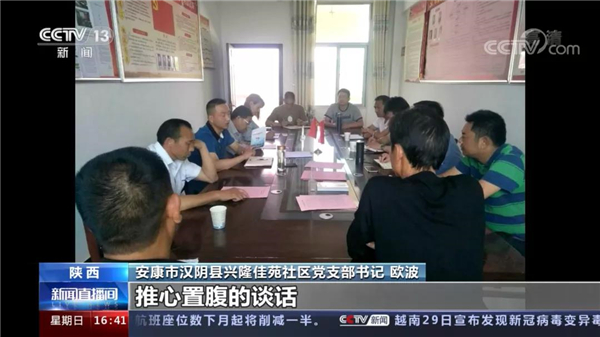 安康市漢陰縣興隆佳苑社區(qū)黨支部書記歐波:“當(dāng)時遇到這個困難我們沒有退縮,我們在思考,還是要把三個村的支部的思想先統(tǒng)一起來。所以,我們分別到西嶺村和興隆村,和他們的支部班子來一個推心置腹的談話。”