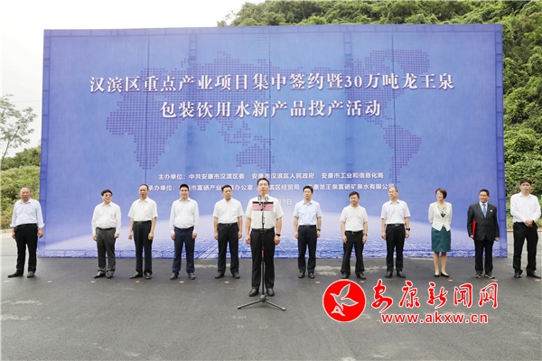 本網訊(記者 艾蓓)9月9日,漢濱區舉行重點產業項目集中簽約暨30萬噸龍王泉包裝飲用水新產品投產活動。市委書記趙俊民出席并宣布投產運營。副市長寇全安參加活動。
