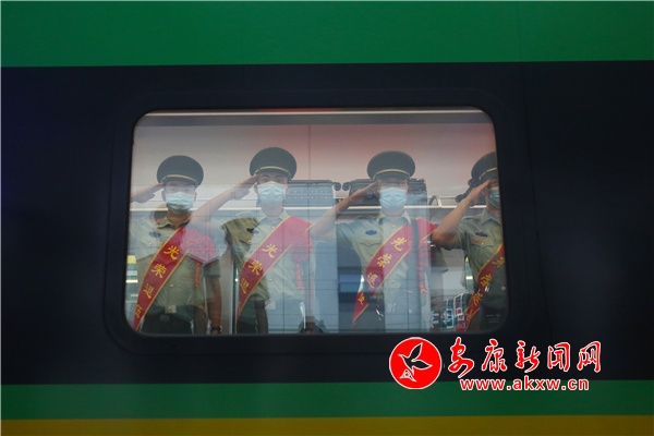 伴隨著汽笛聲響起,在難舍難分中,所有退伍老兵帶著支隊領導的囑托和戰友們的祝福,揮淚告別,踏上歸途。送行官兵列隊敬禮,向老兵們表達最后的敬意。mNB安康新聞網