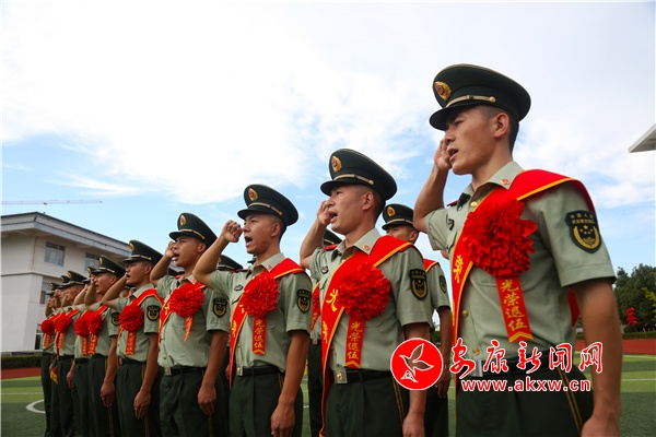 “我是中國人民武裝警察部隊軍人,我宣誓……”離隊前,武警安康支隊組織滿服役期士兵開展退役儀式。滿服役期老兵身披綬帶、胸戴紅花,最后一次站在軍旗前以軍人的身份,重溫誓詞、向軍旗敬禮。期間,留隊戰友為滿服役期士兵卸下警銜、領花、帽徽和胸標,為他們戴上“光榮花”。“8年了 ,突然要離開,還真有點舍不得。”卸下肩章的那一刻,下士趙毅璞眼中泛起的淚花忍了又忍,終究還是沒能忍住。mNB安康新聞網