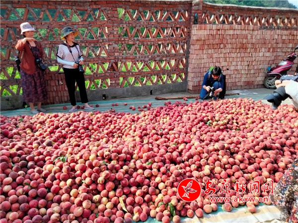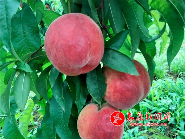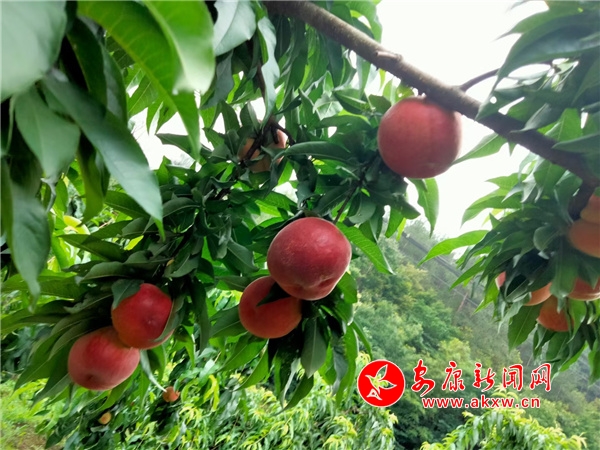 夏日清晨,在盤龍村集體經濟合作社1000畝桃園里,掛滿枝頭色澤鮮艷的桃子,是全村人眼中的“寶”,走過桃園的人,總忍不住多看幾眼。