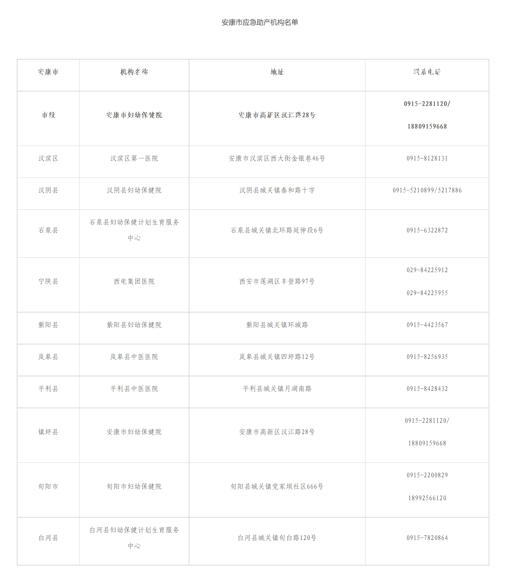 具體應(yīng)急助產(chǎn)機構(gòu)名單如下: