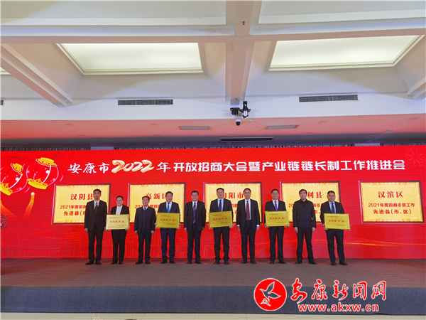 會議通報了安康市經濟社會發展、重點產業鏈鏈長制推進、重點產業方向、營商環境及2022年開放招商重點工作,表彰了2021年招商引資工作先進單位和先進個人。李華楓等16名同志聘為安康市開放發展高級顧問。