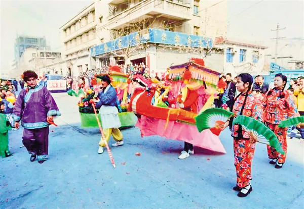 1982年的正月燈節(jié)時(shí),安康城區(qū)的群眾在大北街道觀看燈節(jié)的表演(圖一)。1985年正月燈節(jié)時(shí),安康城區(qū)的各單位也參與到花燈表演,歡天喜地地舞龍弄獅,熱熱鬧鬧地過大年(圖二)。2002年春節(jié),旬陽縣城的人們被熱鬧的彩船表演所吸引。其中“老搖婆”的扮演者朱漢春老人是當(dāng)?shù)赜忻奈乃噽酆谜?圖三)。