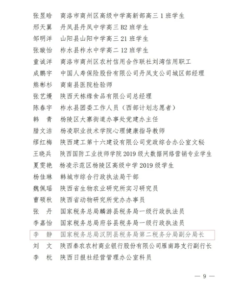 2020-2021 年度“陜西省優(yōu)秀共青團(tuán)干部” 名單