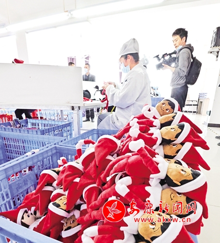 當天的央視新聞云直播,是先在寧夏閩寧鎮,看“干沙灘”如何蝶變“金沙灘”;到四川涼山彝族自治州,看阿吼村從交通閉塞到全村通暢的發展成果;到貴州省安龍縣,感受大石山里“菌”飄香,遇見“蘑菇小鎮”的美好生活;最后來到我市,看曾經特困地區如何走出致富路,了解社區工廠憑借毛絨玩具加工如何形成全產業鏈。