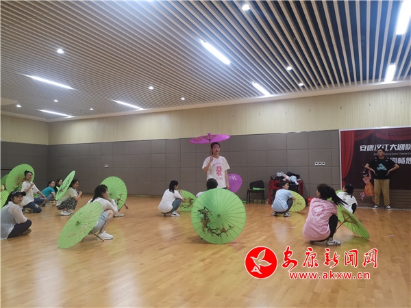 在練功室,演員們正在加緊排練,或一遍一遍地對著鏡子過動作、揪細節,或在角落里反反復復地揣摩著唱詞的聲調與停頓,一派熱火朝天的忙碌景象。據了解,安康漢調二黃研究院在本屆龍舟節承擔有6月3日上午主題活動上的一個漢劇原創節目表演《大美安康》,以及同日夜間演出節目《樵木花》。