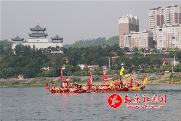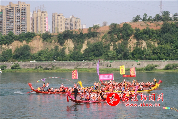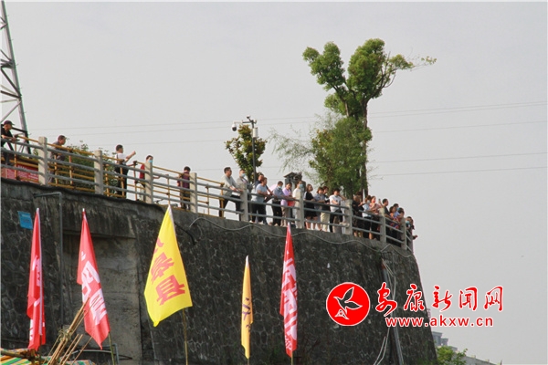 五月初至,龍舟文化園旁的江面就如期熱鬧起來。早早下水訓練的數十支隊伍個個鉚足了力氣,在水里你追我趕,暗自較勁。號子聲、鑼鼓聲、吶喊聲此起彼伏,聞聲而來的群眾駐足兩岸。一聲令下,木槳齊動,龍舟如矢,江上頓時生出一道道長長的尾浪,好一派熱火朝天的景象。“龍舟競渡最能展示我們安康人永不服輸的個性。今年共有29支隊伍參賽,總人數超過660人,年齡最大的選手70歲啦,最小的20歲。6月3日就要開賽了,大家練得很起勁。”賽前訓練的管理工作人員馬小偉介紹說。