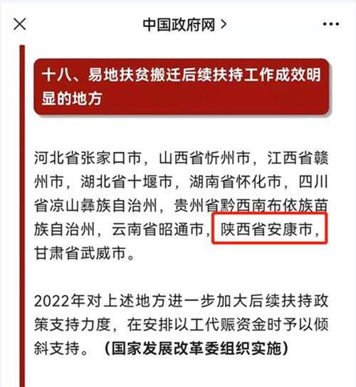 其中,我市入選“易地扶貧搬遷后續(xù)扶持工作成效明顯的地方”,受到督查激勵。2022年,將由國家發(fā)展改革委組織實施,進(jìn)一步加大后續(xù)扶持政策支持力度,在安排以工代賑資金時予以傾斜支持。Lz2安康新聞網(wǎng)
