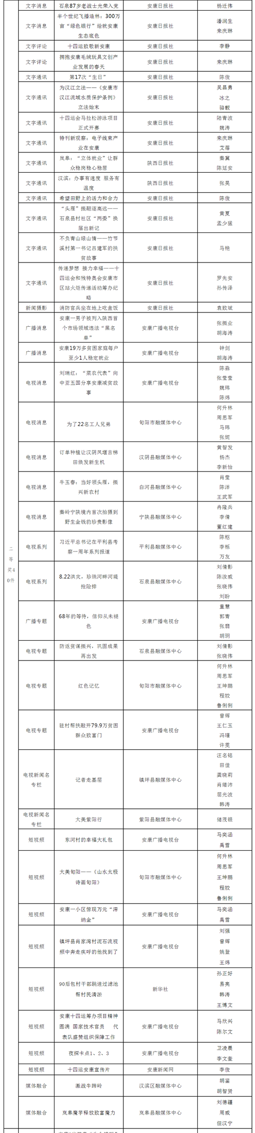 2021年度安康新聞獎評審工作在中共安康市委宣傳部的指導下,由市記協具體組織實施,經過各申報單位推薦,市記協初審、復審并組織專家定評,評選出擬獲安康新聞獎作品114件,其中一等獎25件、二等獎40件、三等獎49件。