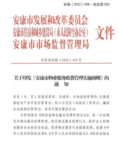 各縣(市、區(qū))發(fā)展改革局、住建局、市場監(jiān)督管理局,安康高新技術產業(yè)開發(fā)區(qū)管委會、恒口示范區(qū)(試驗區(qū))管委會、瀛湖生態(tài)旅游區(qū)管委會,各有關物業(yè)服務企業(yè):