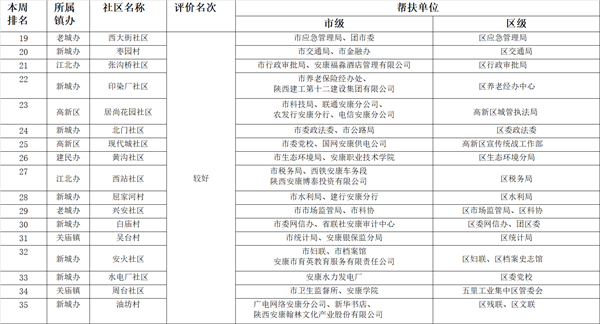 附件:市、區(qū)兩級部門、單位幫扶社區(qū)(村)周排名情況一覽表