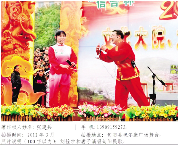 劉銓學和妻子在旬陽祝爾慷廣場演唱旬陽民歌