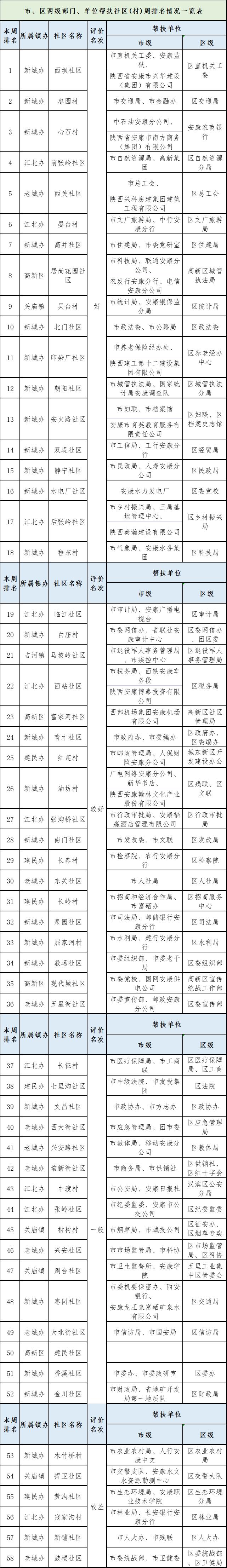 附件:市、區兩級部門、單位幫扶社區(村)周排名情況一覽表