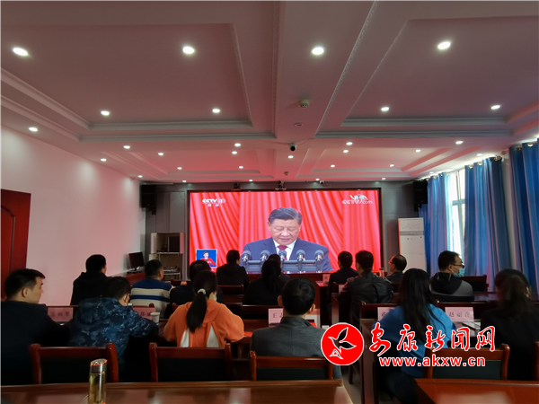 △市工信局(國資委)機(jī)關(guān)組織黨員干部收聽收看中國共產(chǎn)黨第二十次全國代表大會開幕會直播。(通訊員 靳嬌 )