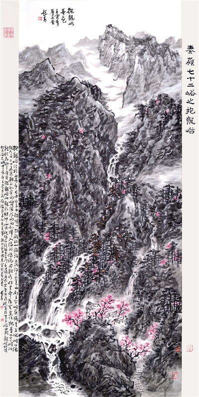 春回大地,萬象更新,章長青《秦嶺七十二峪》系列山水畫臺歷也新鮮問世,這是他用了多年的時間,走訪秦嶺眾多峪口后完成的。中國國家畫院研究員、清華大學美術學院教授、博導王魯湘曾說過,恐怕在華夏大地上再難找到如秦嶺這樣完美的“師造化”藍本了,要嶺有嶺,要峰有峰,要丘有丘,要壑有壑。他認為秦嶺是中國山水畫的發祥地,唐代王維、李思訓畫的就是這方山水。