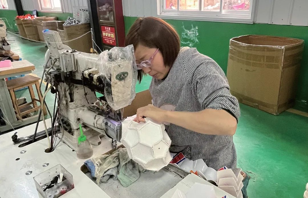 近日,在漢陰縣興隆佳苑社區工廠內,40歲的脫貧戶張麗正在“縫制足球”,每月平均收入2600元左右。農民日報·中國農網記者 韓嘯 攝