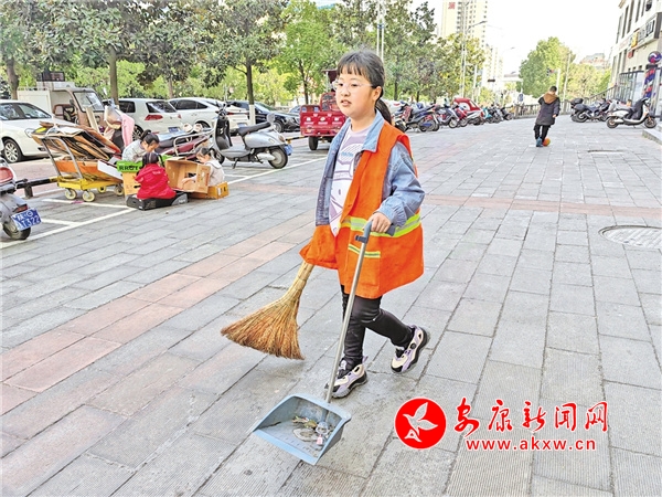 3月5日,家住高新區興科明珠小區的黃小米小朋友走上街頭,開始了自己的“學雷鋒”志愿清潔活動。黃志順 攝