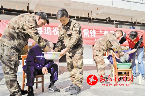 日前,嵐皋縣退役軍人事務局組織10名退役老兵來到縣中心敬老院,開展“春風敬老” 志愿服務活動,為老人們理發、洗頭、剪指甲,用實際行動踐行退役軍人志愿服務精神。 廖霖 攝