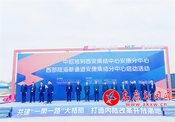 會前,中歐班列西安集結中心安康分中心、西部陸海新通道安康集結分中心舉行了啟動活動。西部陸海新通道安康鐵海聯運首趟列車與"安西歐"中歐班列同步發車。