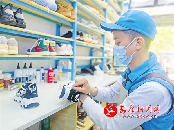 去年5月王輝遠(yuǎn)赴鄭州培訓(xùn),去年10月開(kāi)業(yè)到今年4月中旬,店里的生意越來(lái)越有起色,王輝擔(dān)心的事情卻越來(lái)越多。“口碑有了,接到的單子也更多。能送來(lái)洗的鞋基本都不便宜,最貴的幾千上萬(wàn)的都有。貴的鞋還是只能我洗,不然一個(gè)月洗壞那么幾雙這店開(kāi)不下去。”王輝直言,現(xiàn)在最操心的就是一旦自己離開(kāi),這個(gè)店是否還能正常運(yùn)轉(zhuǎn)。