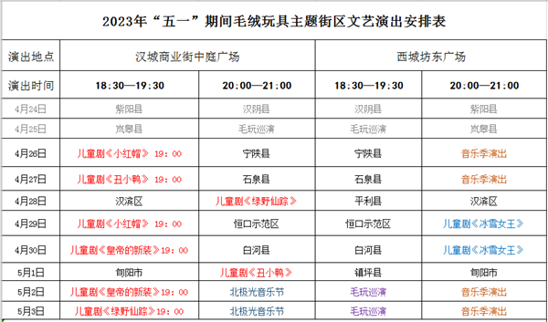 2023年“五一”期間毛絨玩具主題街區文藝演出時間安排表公布D2u安康新聞網