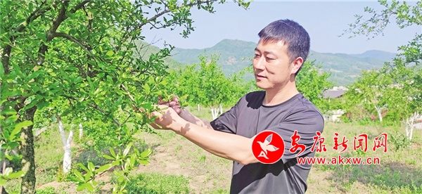 入春以來,在農業技術人員的技術指導下,村民們積極做好石榴樹的疏枝修剪、水肥管理及抹芽等工作,現在正是疏花階段。“這幾天溫度低,石榴還沒大面積開花,等過幾天溫度升起來了,就要把殘次花給疏掉,這樣剩下的果子才長得大。”正在石榴園里忙碌的村民劉發儉拿著工具,一絲不茍地檢查每一株石榴樹的生長情況。