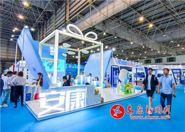 位于主題展區的安康展館面積160余平方米,外形是一個打開的禮盒,象征著開放的安康,藍天白云點綴象征著優美的自然環境,毛絨玩具“安安·康康”吸引了眾多參展者駐足觀看和合影留念。全市共組織12家企業攜46款產品參展,主要以毛絨玩具、富硒食飲品、消費電子產品為主,分三個區域集中展示安康名優特色產品。