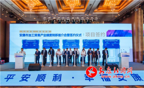 借助第13屆中國加工貿易產品博覽會東風,我市于5月10日下午在東莞市舉行了安康市承接加工貿易產業梯度轉移推介會暨簽約儀式。陜西省商務廳副廳長張文政,市委常委、常務副市長高晶華分別致辭,商務部外貿司二級巡視員蘇斌,陜西省商務廳二級巡視員昌利以及廣東省商務廳、東莞市商務局相關領導出席會議。廣東海康控股集團有限公司、東莞市玖月汽車貿易有限公司、廣東陜商實業有限公司等150余家企業代表參會。
