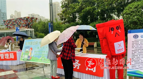 活動當日陰雨綿綿,北辰公園人頭攢動。在一排排豐富多彩的宣傳展板和生活垃圾分類成果展區前,不少市民駐足觀看和詢問有關情況,工作人員耐心解答并熱情洋溢地宣傳普及生活垃圾分類知識;顒蝇F場還設置有妙趣橫生的環保游戲,身著環保標識的“人形玩偶”頻頻與大家互動,在輕松歡樂的氛圍中傳遞環保理念。