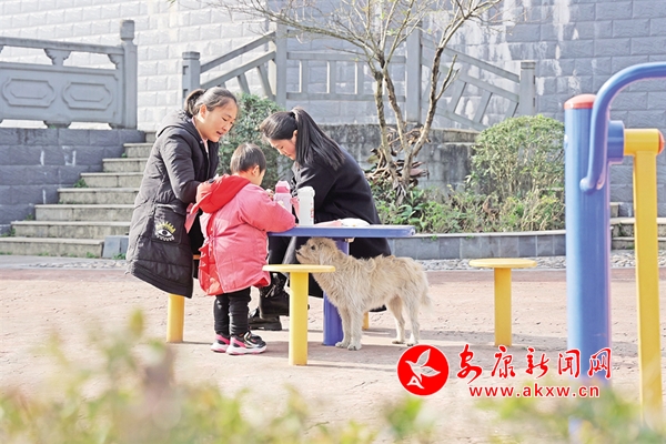 3月18日,大竹園鎮糧茶村,群眾在配套設施完善的集鎮游玩。周濬 攝
