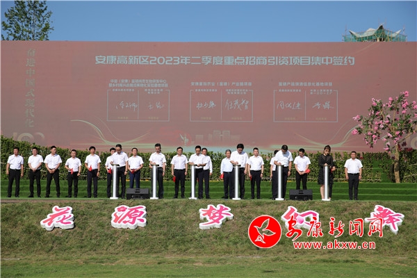 活動現場,還組織開展了納新黨員集中宣誓和老黨員重溫入黨誓詞儀式;為“光榮在黨50年”的老黨員代表頒發了紀念章;為安康高新區“學思踐悟新思想、干闖當頭譜新篇”知識競賽獲獎者頒獎。同時,還舉行了“安康高新區2023年二季度重點招商引資項目集中簽約活動”,總投資24.7億元的9個產業項目在現場領導、嘉賓的共同見證下進行了集中簽約。