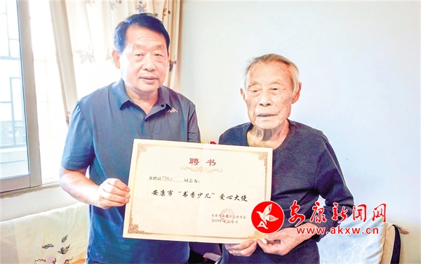 今年6月初,鄺民三向安康市書香少兒讀書會捐款4000元,支持為留守兒童送閱讀工作。“這是我們在漢濱區譚壩鎮九年制學校開展贈書活動的照片。”“這是為了感謝您,我們特制的捐贈證書和愛心大使聘書,還有贈閱圖書印章……”耄耋之年的鄺民三滿頭銀發卻耳聰目明,聽著李煥龍的介紹,眼角浮現出笑意。