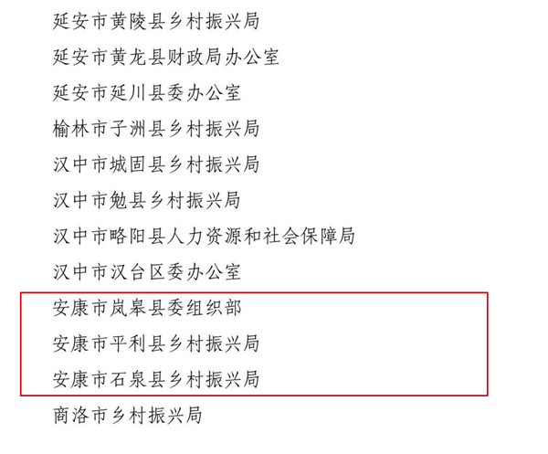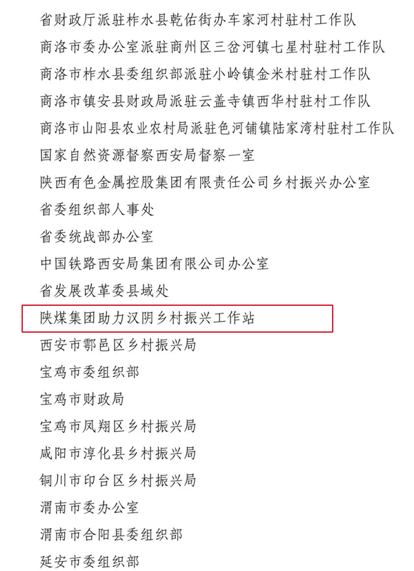 2021年以來,全省各級各相關單位用情用力、持續開展定點幫扶和駐村幫扶工作,為全省鞏固拓展脫貧攻堅成果上臺階、鄉村振興見實效作出了突出貢獻,涌現出了一大批先進集體和先進個人。為表彰先進、樹立典型,進一步營造氛圍、凝聚合力,激發各級各相關單位參與定點幫扶、駐村幫扶工作的積極性、主動性和創造性,省鞏固拓展脫貧攻堅成果同鄉村振興有效銜接領導小組辦公室決定,授予陜煤集團助力漢陰鄉村振興工作站等50個單位“陜西省定點幫扶工作先進集體”榮譽稱號,授予李鵬等100名同志“陜西省定點幫扶工作先進個人”榮譽稱號。