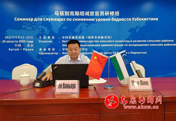 烏茲別克斯坦是上海合作組織框架內的重要國家,是中國的友好鄰邦和全面戰略合作伙伴。為積極落實中烏兩國元首指示精神,中國農業農村部(國家鄉村振興局)高度重視中烏減貧交流中的能力建設,本次研修班參訓學員多達9500余人,在中國歷年的國際減貧培訓中前所未有。安康《小玩具做出大文章——安康市大力發展毛絨玩具產業幫助群眾實現就業增收》案例,經省、市鄉村振興局推薦,作為陜西省唯一減貧案例,于8月24日下午,由安康市人社局副局長李萬華,向烏茲別克斯坦基層一線減貧官員在線進行經驗講述。