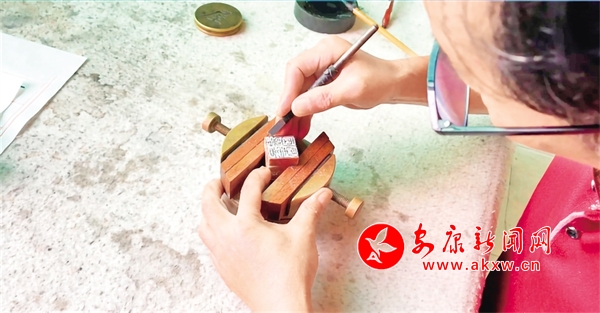 說起機(jī)器雕刻的市場優(yōu)勢(shì),郭榮高的神色中閃過一絲落寞,但又轉(zhuǎn)瞬即逝。他說,作為這個(gè)行業(yè)的傳承人,應(yīng)該始終如一追求書法的構(gòu)思和手工雕刻的質(zhì)感,讓文化張揚(yáng)個(gè)人風(fēng)格,讓作品不乏人文氣質(zhì)。在他看來,手工碑刻有韻律感,線條古樸自然,而機(jī)器篆刻是完全復(fù)制,只是一些均勻的線條而已。很多情感上的東西是機(jī)器無法替代的。