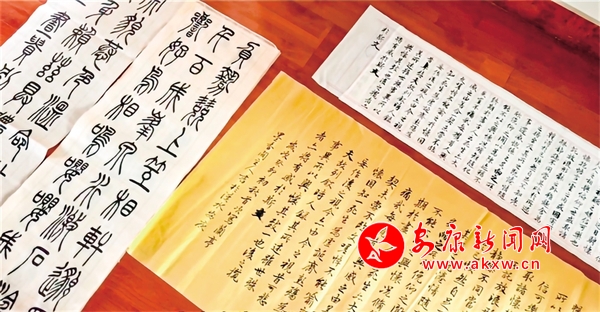 識(shí)字、書寫成了制約郭家生意的最大瓶頸,15歲的郭榮高便第一次走進(jìn)新華書店,買了人生第一本字帖——顏真卿的《多寶塔》。雖然每天用報(bào)紙、木板沾水練字,郭榮高覺得自己進(jìn)步并不大,筆法、結(jié)構(gòu)、快慢、輕重、大小、呼應(yīng)、承讓、向背、提按、頓挫等自己都掌握得不好。于是他又想盡辦法拜師,先后師從韓正楷、劉暘光、馬昌琪等安康本土?xí)摇?span style="display:none">Add安康新聞網(wǎng)