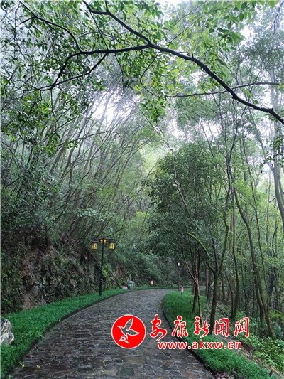 進(jìn)入香溪洞景區(qū)大門,世界變得更加清寧、幽靜,雨點(diǎn)也更加稠密,“叮叮咚咚”、“噼里啪啦”彈奏著或鏗鏘、或悅耳的動(dòng)聽音樂。四周除了雨聲還是雨聲,塵世的喧囂和雜念被雨阻隔在外,心里變得寧靜踏實(shí)。我十分享受這難得的清凈和愜意,也十分感謝夏日清晨的這一場雨,讓我有了和自己獨(dú)處的機(jī)會(huì)。我微閉著雙眼,用心感受身心與大自然合而為一的心跳,傾聽腳步踏過歲月的蛩音。我有多久沒有如此親近過大自然,沒有停下過匆匆前行的腳步等等靈魂?有多久沒有審視過前行的腳步里,有幾分是篤定、沉穩(wěn)的?又有多久沒有與自己的靈魂深度交流過,問問自己的內(nèi)心到底需要什么?我敞開心扉,一點(diǎn)點(diǎn)梳理,一點(diǎn)點(diǎn)整理,與自己暢談,與天地暢談。雨清洗著大自然的塵埃,也蕩滌著我的心靈,浮躁的心被撫慰平息。
