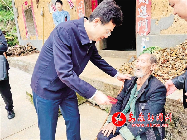 市民政局前往漢濱區雙龍鎮21組慰問百歲老人。劉益波 攝
