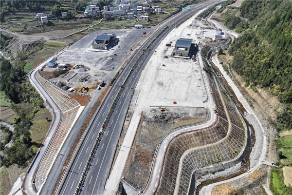 巫鎮(zhèn)高速公路中壩互通施工現(xiàn)場(11月1日攝,無人機(jī)照片)。新華社記者 邵瑞 攝