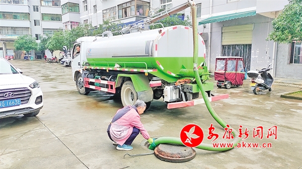 斑桃社區保潔員用吸糞車清理化糞池 陳楚庚 攝