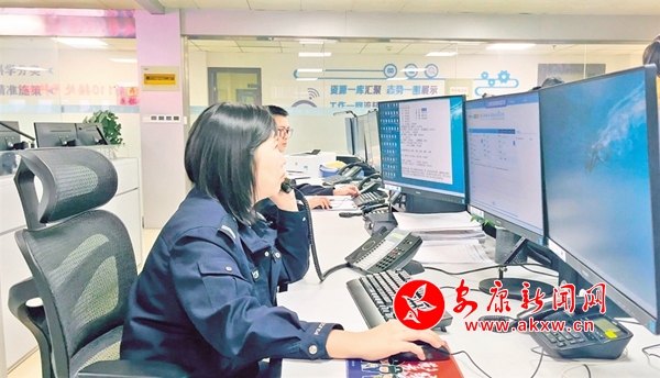 安康公安110接警指揮大廳。
