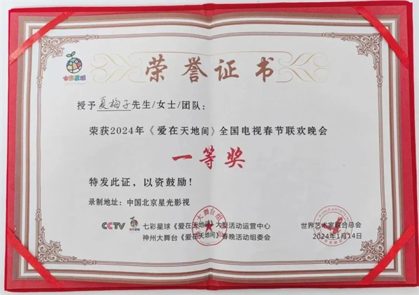 1月15日,《愛在天地間》全國電視春節聯歡晚會在京錄制圓滿成功。晚會由劉相周擔任總導演,邀請有春雷、王琪、烏蘭托婭、夏梅子等多位嘉賓,分別表演了多個精彩節目。夏梅子在這次晚會上演唱了陜南民歌《幸福歌兒唱安康》并榮獲一等獎。w4N安康新聞網