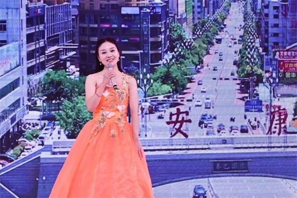 夏梅子在《愛在天地間》春節聯歡晚會上演唱陜南民歌《幸福歌兒唱安康》