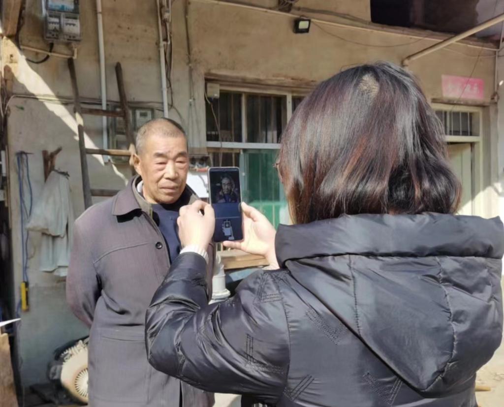 五愛村干部上門為高齡老人做生存認(rèn)證。新華社記者 李亞楠攝
