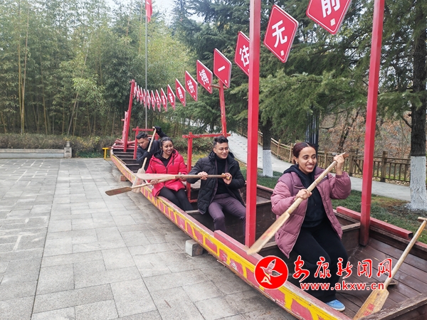 在游覽瀛湖風景區時,留學生們陶醉于湖光山景。4名留學生在景區打卡地盡情打卡拍照,定格最美的瞬間,并通過視頻與家人連線,讓家人欣賞安康秀美的山水、美麗的鄉村、鄉村振興下村民的美好生活。游船穿梭在湖中,湖景和浮橋倒映在水中,王吉感嘆:“這么大的湖,這么清的水,真是漂亮極了。”77f安康新聞網