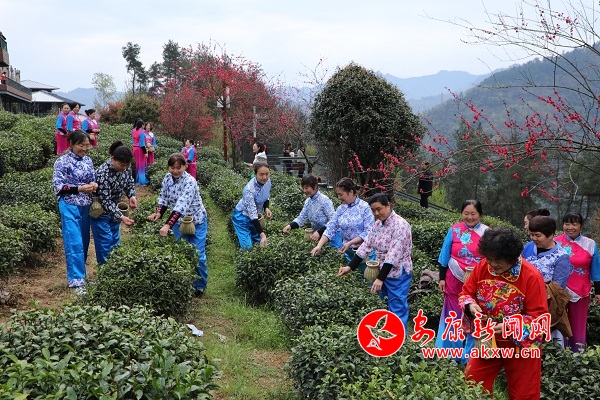 上午10時,《一曲入茶魂》《茶鄉今有信》《新火試新茶》開啟了“春之茶”系列活動序幕。隨后,200余名演職人員通過節目藝術化表現形式對話古今,生動展現了紫陽貢茶根源、茶文化及人民對美好生活、茶園高產的美好向往和祈福。六位“最美”茶藝師在現場進行了茶藝表演,向現場嘉賓及觀眾展示了傳統茶藝的魅力,并對富硒茶進行了推介。