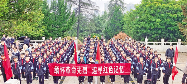 ▲ 4月1日,在清明節即將到來之際,石泉縣云霧山鎮中心小學組織部分少先隊員,在紅軍英雄紀念碑前開展愛國主義教育。譚相華 攝